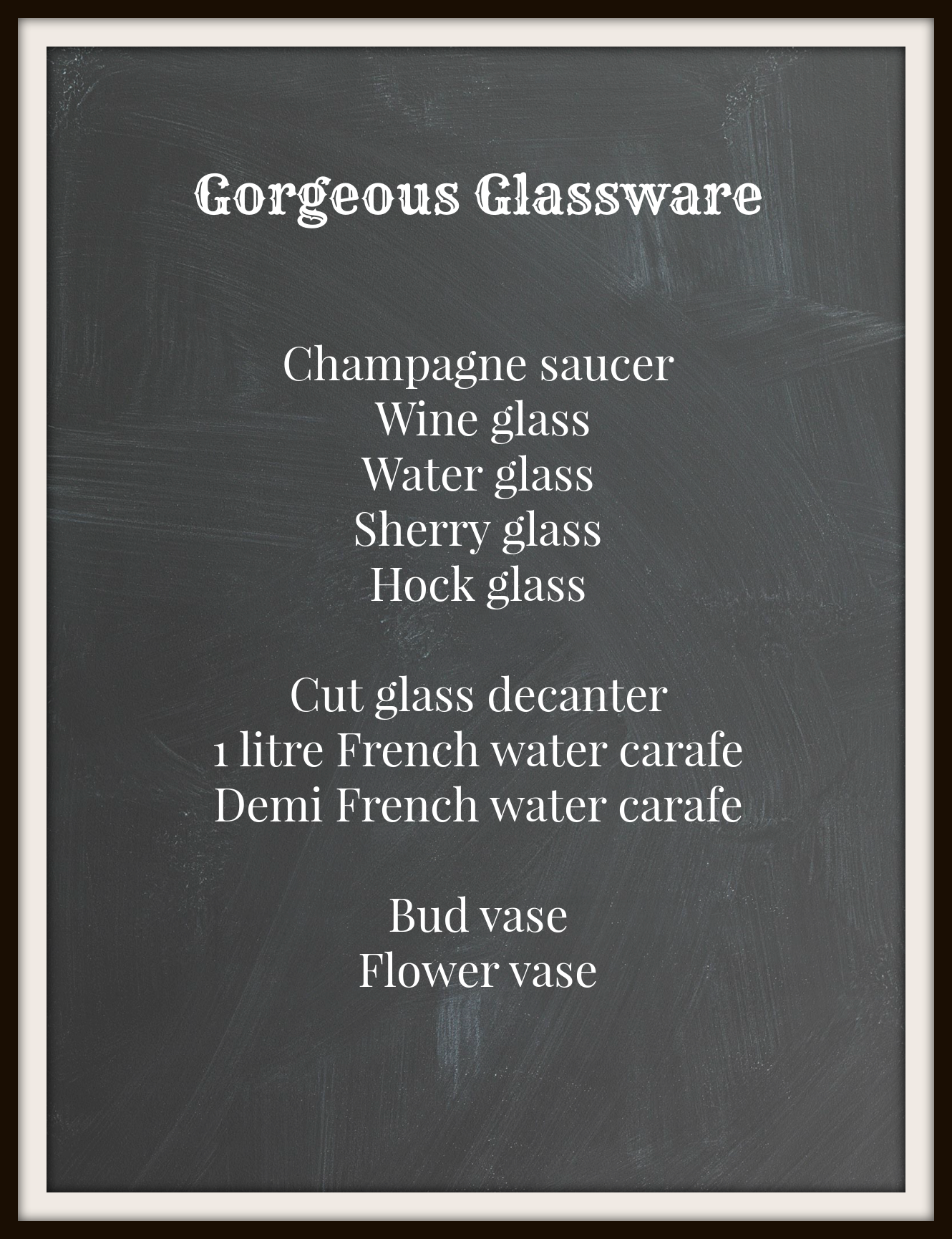 Using gorgeous vintage glassware is the perfect way to inject style and glamour to your drinks reception and tables.