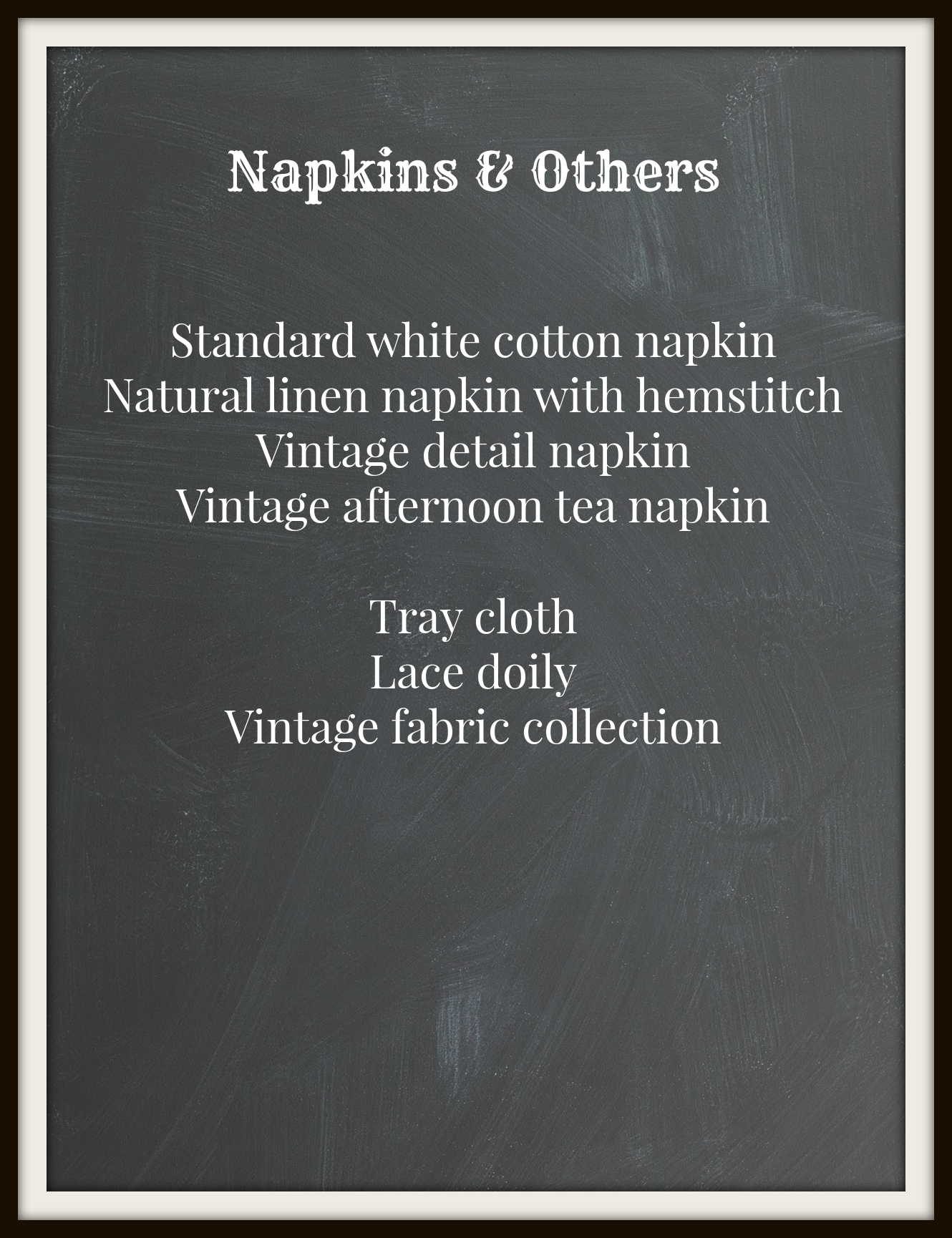 Our lovely linen collection provides the perfect backdrop to your vintage table.