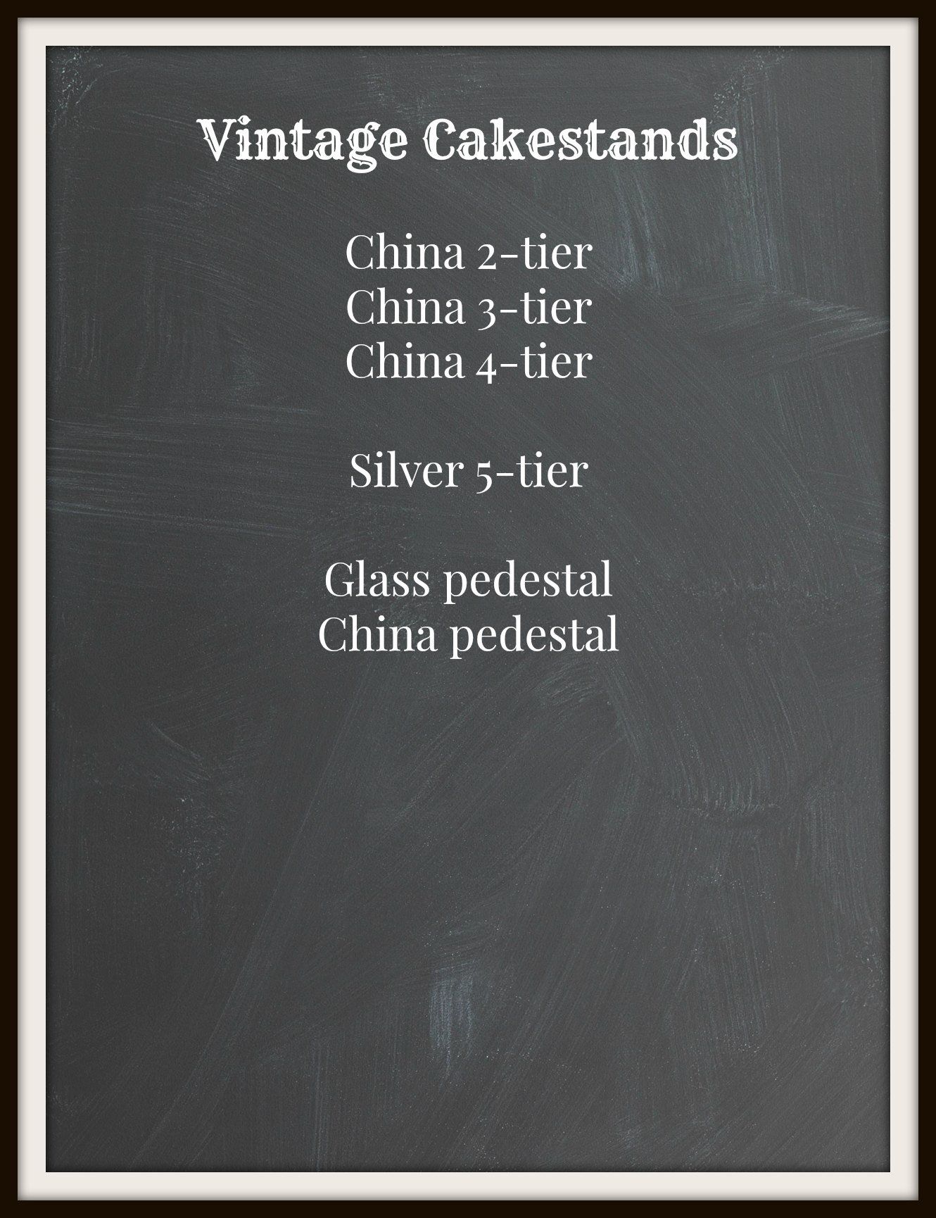 Our pedestal cakestands come in various sizes of glass and china. Perfect for a classic Victoria sponge or to provide elevation for your floral centrepiece.